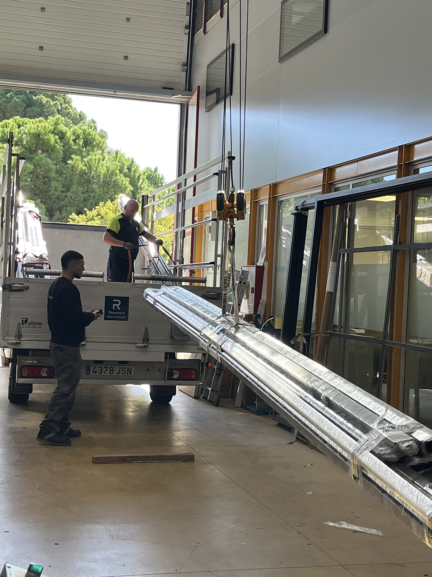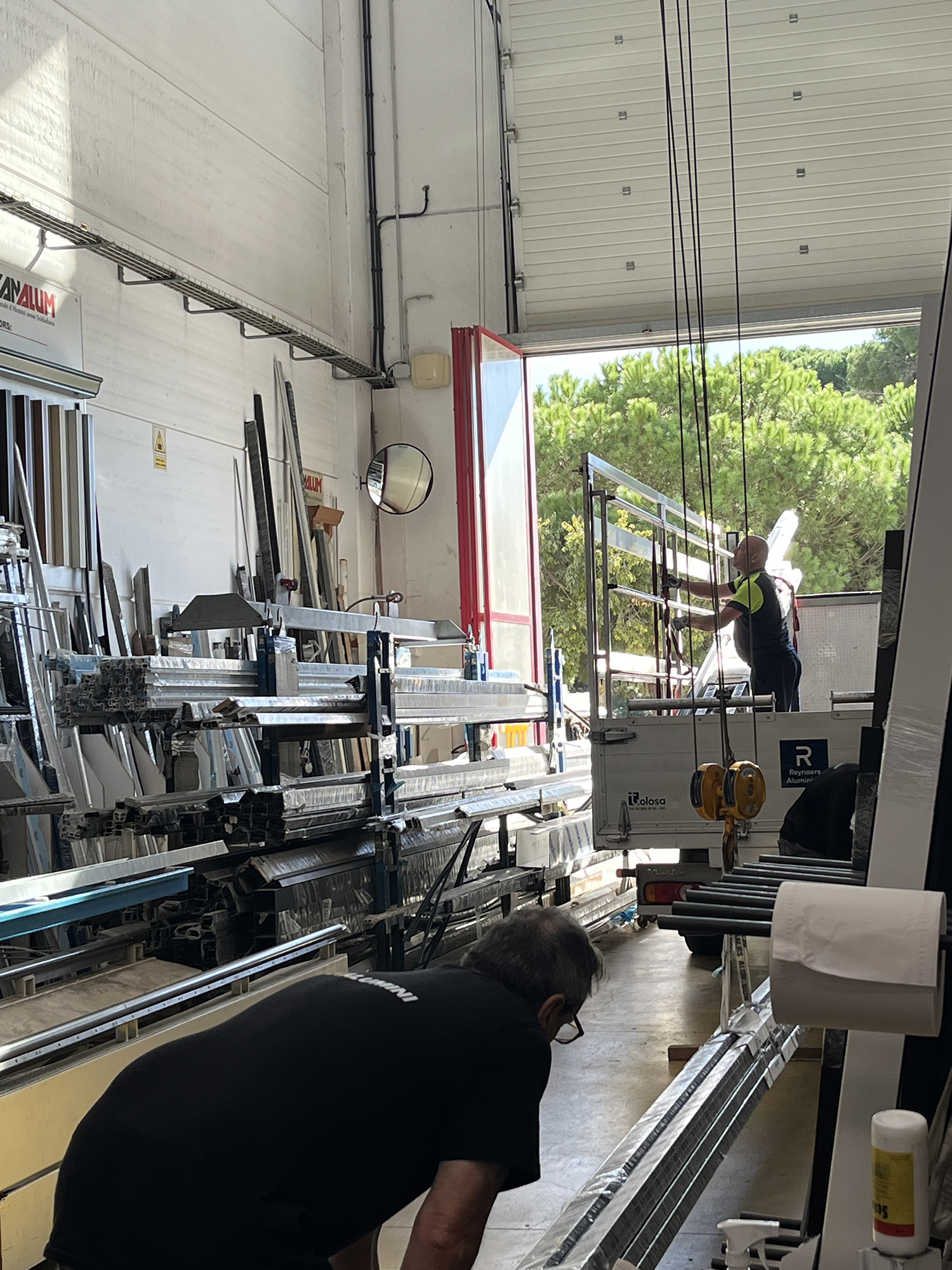 Cada setmana rebem una o dues comandes de perfils d’alumini del nostre principal proveïdor, Reynaers. D’aquesta manera garantim que la nostra producció de finestres i tancaments no s’aturi mai.