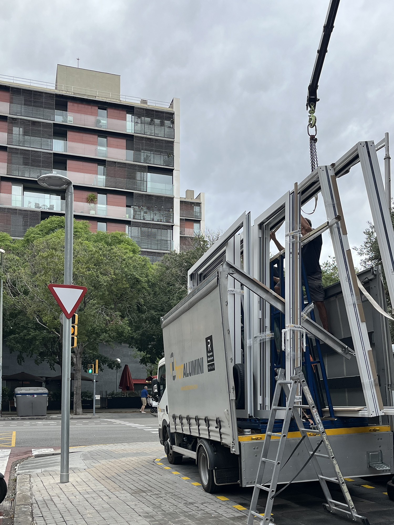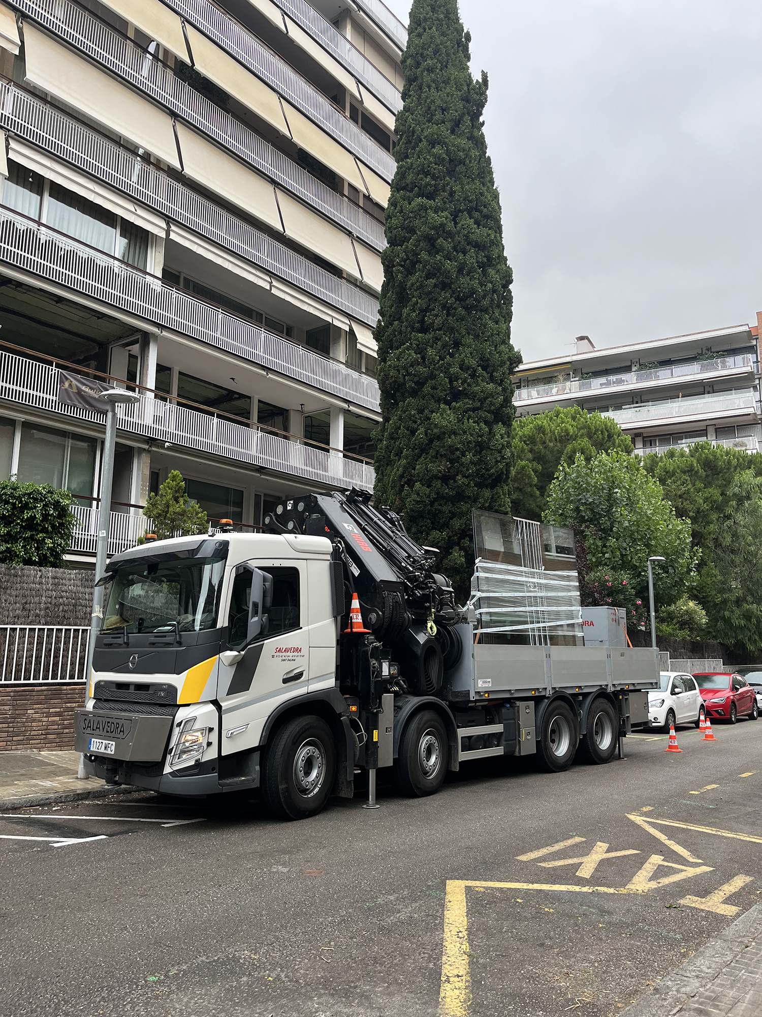 Avui us mostrem les primeres imatges de la reforma d’un pis a Barcelona. Tot el procés va començar dies enrere amb el disseny dels diferents elements i el treball de taller. Va continuar amb el transport i la descàrrega del material, que podeu veure aquí, gràcies a la col·laboració de Transgruas J. Salavedra.